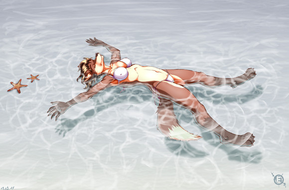 Ah, just the body/belly part looks pretty realistic, thats why I thought about redrawing at first. Ya know, there are many pretty popular furry artists who literally just redraw stock photos and add tails/furry feet and it's so noticeable because of this veeery good body part and pretty dumb feet hah. People take it, cause it looks okay and thats all.