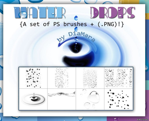 Photoshop CS brushesThis pack contains 8 brushes of water droplets I painted in Adobe Photoshop. Be creative & enjoy them