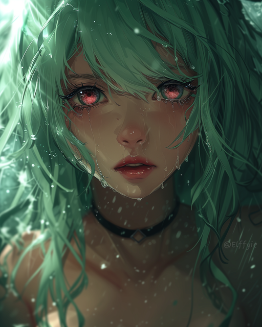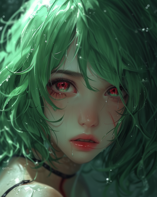 #artedigital #artwork #digitalart #digitalartist #digitalartwork #digitaldrawing #digitalillustration #digitalpainting #dreamy #exclusive #fantasy #fantasyart #feelings #girlportrait #green #greenhair #greenhairedgirl #redeyedgirl #sadness #beautyportrait #adoptablesopen #detailedartwork #artfortheday #aiartwork