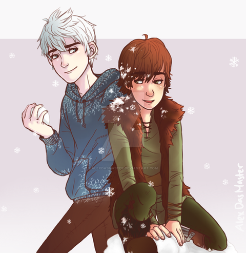 Prompt fulfillment for snowcaines, who won 2nd prize in my giveaway! She gave me a lot of really cool prompts to choose from, but the one I chose was Hiccup and Jack Frost as college roommates.