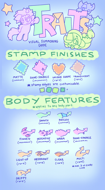 Look through the Pokedex data and see if there is something happening inside the Pokémon, or if it has anything you can turn into a stand-out personality trait. Make use of color as markings, or try to fit the body shape. Other
