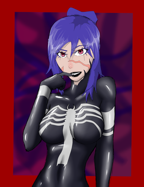 #mask #smiling #venom #bigbreasts #blacksuit #commission #originalcharacter #pinkeyes #ponytail #spiderman #tentacles #animemangagirl #venomgirl #tearingclothes
