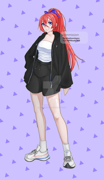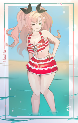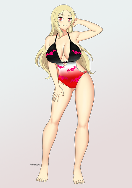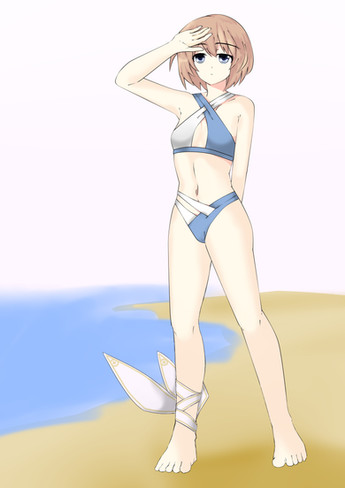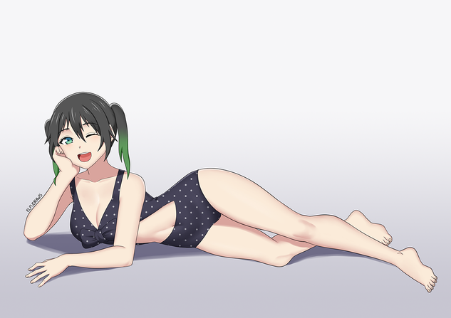 #commission #barefeet #bikini #brownhair #cute #heterochromia #plaid #swimsuit #thighs #twintails #ryoubi #senrankagura