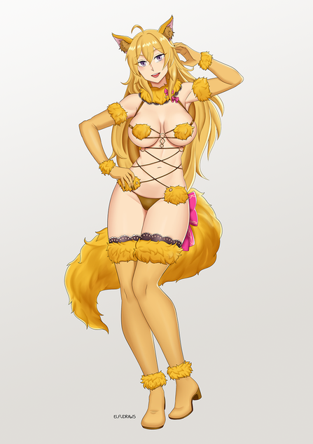 #canine #commission #fox #originalcharacter #anthropomorphic #blueeyes #cute #fur #furry #tail #navelbellybutton #pawsfeet