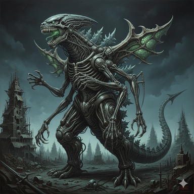 INSTAGRAM FACEBOOK MAILA hybrid between the Alien xenomorpho and the king of the kaijus, Godzilla. How did this happen? Well, I suppose a very young (even small) Godzilla wanted to feed on some succulent eggs in an ancient temple in Antarctica. But don't worry, Skynet will try to keep him at bay ... These things happen ...