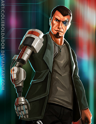 For some reason the first thing I thought of when I was this was David Sariff from Deus Ex: HR. I think it was the cyborg arm and the vest, mostly.