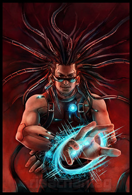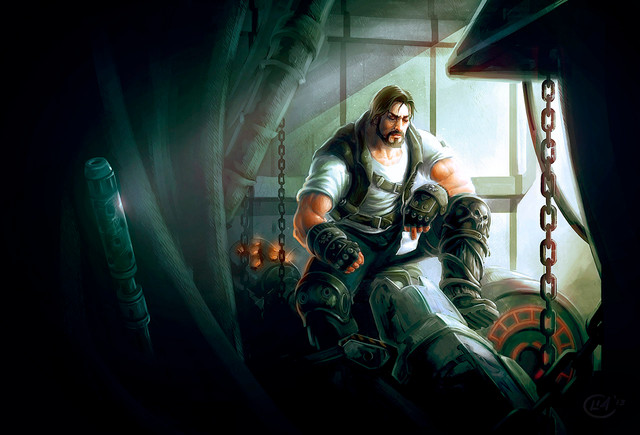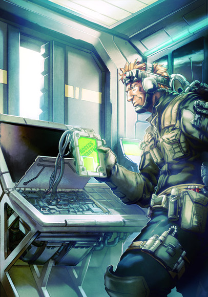 As for the pic, I just love how everything seems so smooth and yet so sharp at the same time. Soft lines, but the detail is there, and the look on the guy's face is obviously someone who loves his job, criminal as it may be. Love the lighting effects, too. Especially on the right arm.