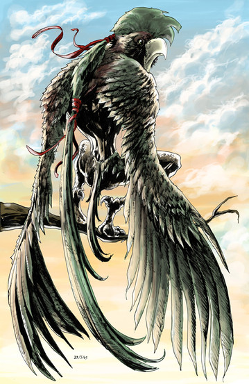 awesome. the concept, the musculature and feather effects, esp at the tufting on the wings... and the vague hellish effect of the background... too cool man.