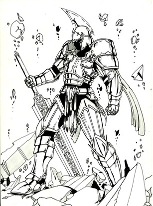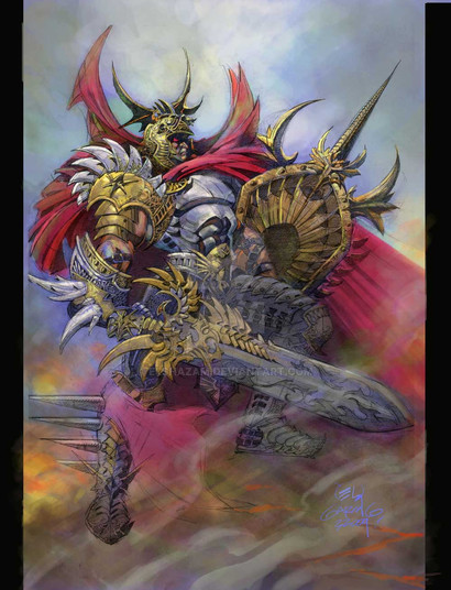 Wow again. An exceptional sense of movement from the swishies at the bottom, and I just love the character design. I'm guessing from the commentary, and a very loose understanding of spanish that he's a celtic god. The armor is stunning, the way you've hinted at detail that the eye automatically fills in is amazing. The simple monotone approach only makes this piece greater in my humble opinion, as its something I struggle to do. I'm really not surprised this got a DD... it truly deserves it.