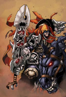 me alucina el hacha y el caballo. la armadura luce con oxido pero de la sangre... moortaaal!!! Por favor, por favor, hagase una version del Death Dealer de Frazetta!!!
