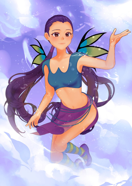 #air #asian #beautiful #blackhair #blue #chinese #cloud #cute #disney #fanart #female #girl #guardian #haylin #kandrakar #longhair #outfit #sky #twintails #wind #wings #witch #woman