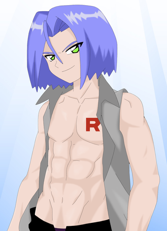 #abs #blue #boy #cute #evil #gloves #greeneyes #handsome #hot #male #man #muscles #outfit #pokemon #purplehair #rocket #sexy #sparkles #teamrocket #villain #white #dakimakura #kojiro