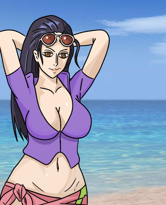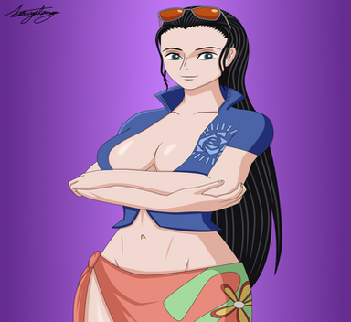 #anime #blackhair #blue #cute #female #girl #island #lovely #manga #nico #onepiece #orange #pirate #robin #sea #sunglasses #sweet #woman #longhair