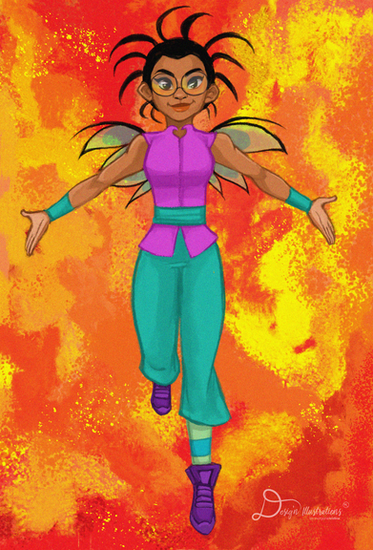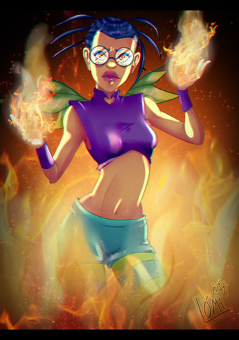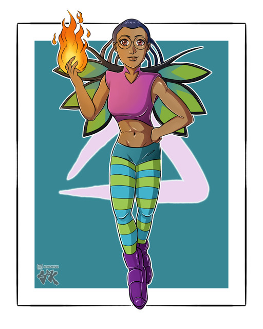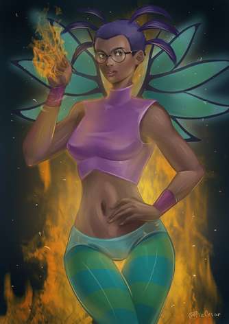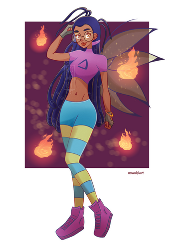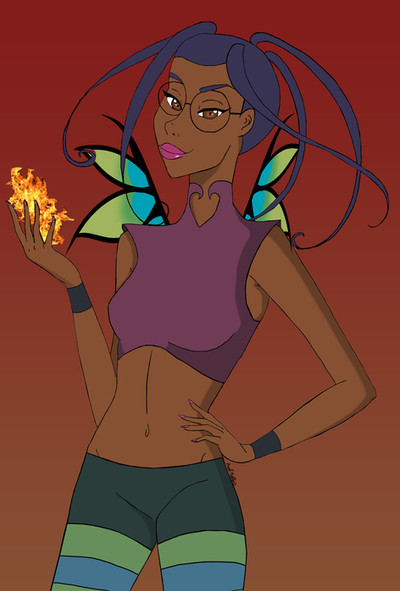 #beautiful #bluehair #burn #cute #darkskin #disney #fanart #female #girl #glasses #guardian #kandrakar #outfit #pants #smile #smoke #tara #taranee #taraneecook #wings #woman #fire