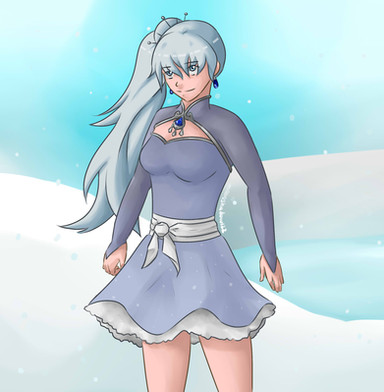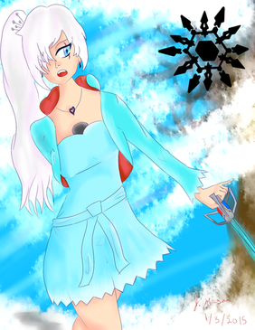 #blue #blueeyes #cute #dress #dust #fanart #girl #huntress #jewelry #magic #ponytail #roosterteeth #schnee #sdc #skirt #snow #snowwhite #tail #weiss #white #whitehair #rwby #weissschnee