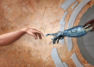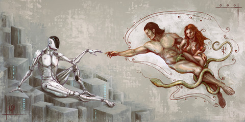 If there was an actual fresco the full size of the original "The Creation of Adam" with Adam being a transhuman half machine or a robot, I could pay big money to get that on my wall.