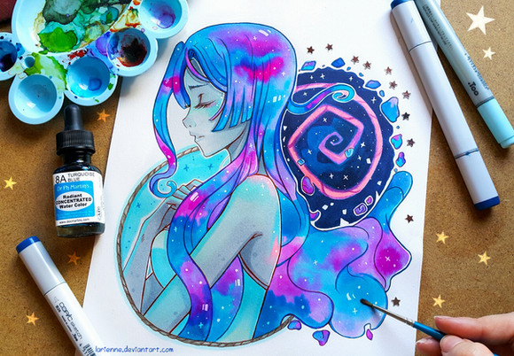 woah that looks absolutly stunning! Really looks like some kind of celestial being. I love the stars and how her skin seems to be the night sky!