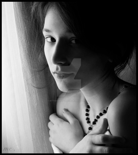 The model is absolutely beautfiul! But her eyes speak as though she has worries or has been through hard times. She seems like she's slightly uneasy about posing nude for this picture or series of pictures, but secretly likes it because it's freeing, rebellious, and/or new. Am I correct? If I lived in Canada I'd beg for a shoot with her.