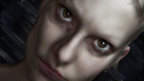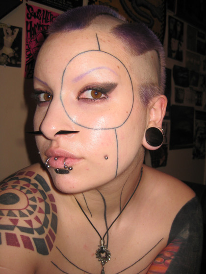 A shot from a video I did last night and am editing now. Starring the model Velocity as a cyberpunk freelance agent of chaos. Doing her pre-heist netdive here, hence the Emotiv Epoc headset. Have a lot of post to do on it so may be awhile before the final video is up, but I'll try to fine more good frames to polish as stills.She did the makeup herself based on the comic book Channel Zero by Brian Wood as well as the "Camoflage from Computer Vision" project: [link]