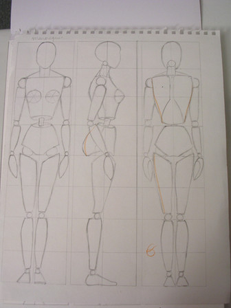 The emphasis in this assignment was on mastering the male and female "figures", not anatomy, meaning that my classmates and I had to study the male and female proportions and basic shapes well enough to translate toward other drawings, many times including other species. This is why the human figures appear more mannequin-like than anatomy-oriented.