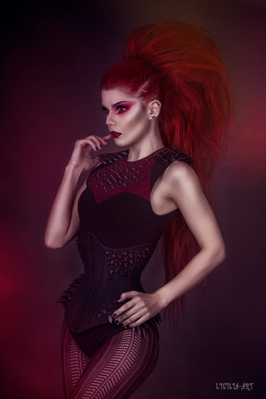 This is a really amazing photo all of the different elements are really working together so well. From the makeup, hair outfit to the background and editing truly amazing work by everyone involved. I feel like the name actually works on many different levels as well.