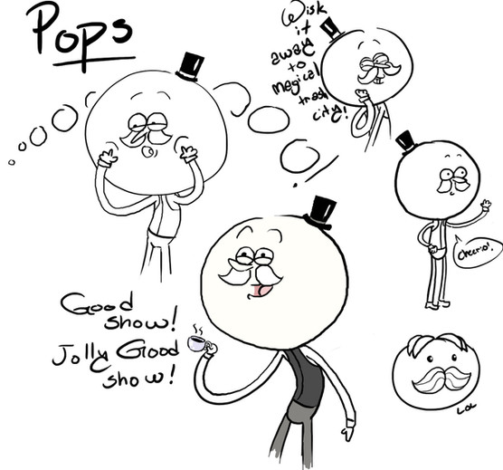 I like Pops' human design. EVEN THOUGH IT MAY REMIND ME OF AN OLDER SPONGEBOB-...............well actually, I think that's why I like it so much. WELL ANYWAY, *is trying to get out of the hole she dug for herself*. That's the cutest thing about Pops - he so posh and yet is like an innocent, naive child, and yet he's old!............... IT MAKES NO SENSE, BUT ANYWAY~