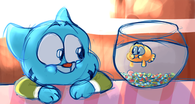 And Gumball is fun to draw. Especially his ears. But I always forget the tail like I just relised for the one I already uploaded.....
