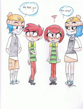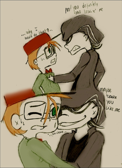 lol I love how you draw these! The sketchy outline (my fave type of pics) with amazing colour too! Is that prisma there? your so inspiring, i just love the way you draw eyes, mouths and clothing! Dude you gotta toss meh some tips ;D