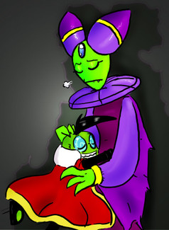 okay xD lol =SparkzRavencraft drew Bubbie and I drew K'nuckles c: and everyone on the Iscribble chat board did the epic background <3