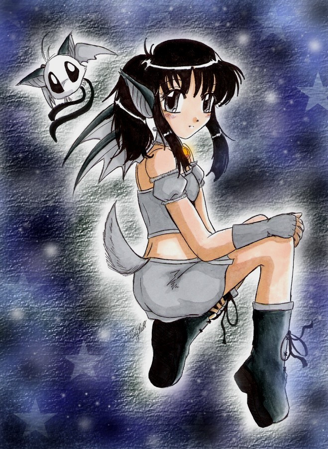 Bat characters are really cool. You did awesome work with her pose and overall drawing. Loving that background a lot. X3