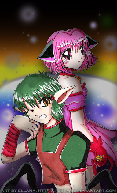 Yeah, colored pencil. I blended it a little on the computer, though. My more recent colored pencil art (the single Mew Mews with the white backgrounds and "The Shirogane Boys") I don't do that with anymore, though, so it's just straight-up colored pencil characters with a computer background.