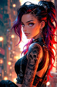 #digitalart #characterdesign #beauty #videogamefanart #cyberpunk #fanart #cartoon #digitalpainting #scifi #drama #anime #portrait #animegirl #adoptables #alluring #bigbreasts #characterillustration #conceptart #dalle3 #demon #design #dress #fantasy #fantasyart #hotbody #illustration #magic #pretty #kyberpunk