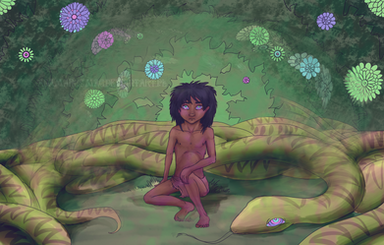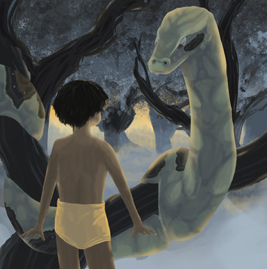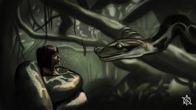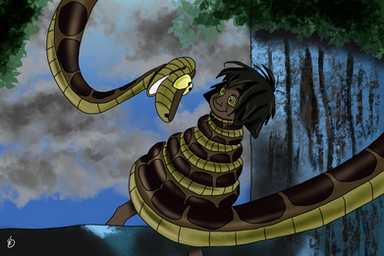 I actually despised that Kaa scene (mostly due to the poor use of the character and that she felt kind of pointless and forgettable), but I did like how they pulled off the coiling. It kinda reminds me of the book (although Kaa only coiled him a few times. One of them was when he was a child and seeking refuge with Kaa, who allowed him to sleep in his coils. The second time was when Kaa mistook him for a prey and coiled him up pretty much exactly the way you depict on that picture. Of course, Kaa was not at the size of a dinosaur like in the movie. lol)