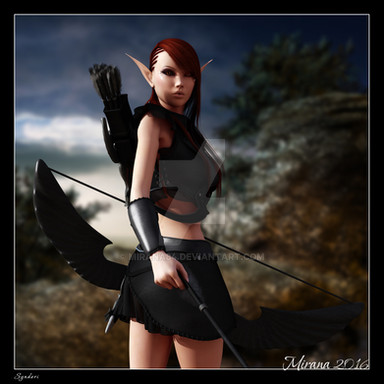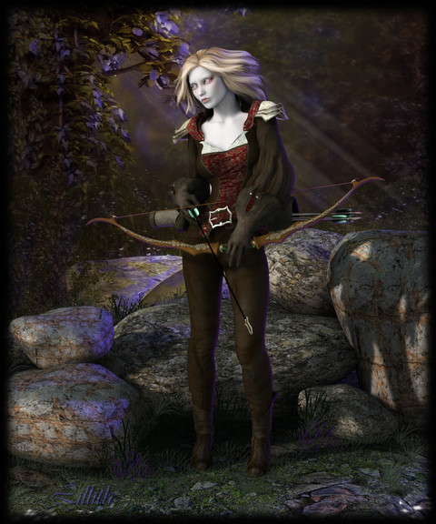 Poser version. I started off designing this character for someone in Poser and I didn't like the bow, the cape came out terrible and then I couldn't figure out how to do half of what I wanted because I am not good with Poser yet, so I gave up after this and switched to Daz/Lux. But anyway, I did manage to salvage this shot at least.For stock use see here: [link]