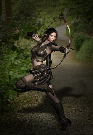 Don't worry I will make one for you with a more realistic pose. Actually she's for a book cover and so she probably doesn't have magical strength or anything, I was just teasing you. The purpose for this one was testing out my character design, the lighting and the setting. I'm not even sure what she's going to be shooting at or the angle or pose yet for the final. But I'm getting closer to the setting and the light that I wanted with the one that's rendering now. So I think I'm almost there. So I can get the pose right on the last one.