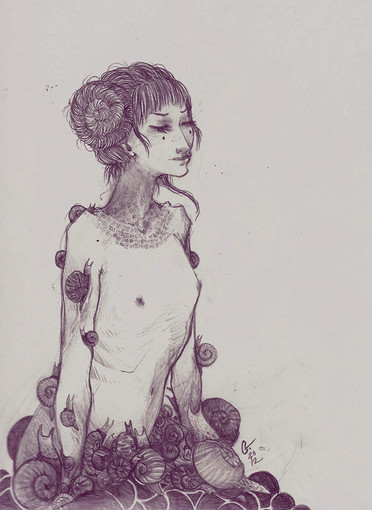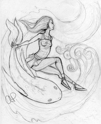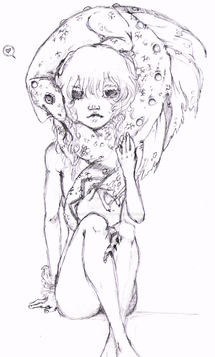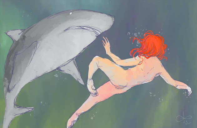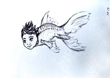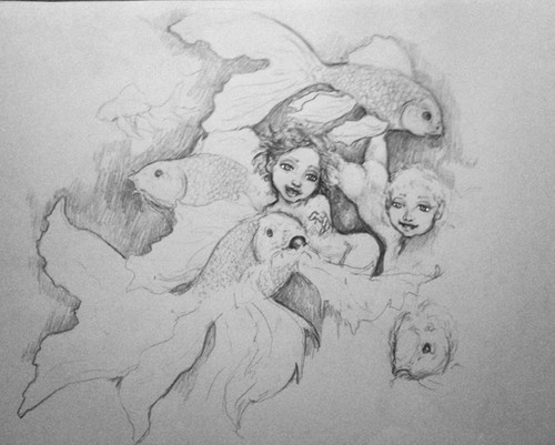 I really like this. The fish looking so strange balances out the girl. Looks like they can both be underwater. Maybe you should do more timewasting pencil work to add a background.