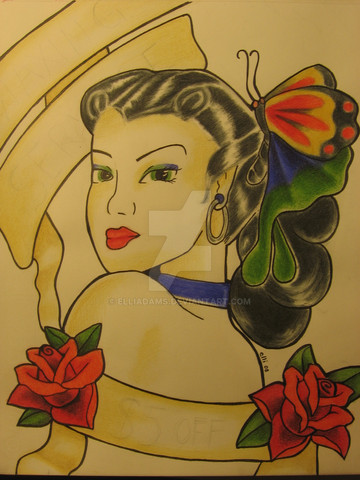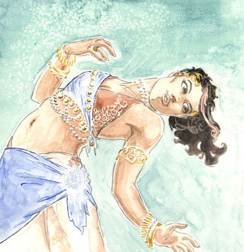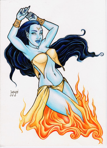 So, I was sitting at a coffee shop waiting for someone and I started drawing this out of boredom. I had found a little tiny picture of some blue haired belly dancer looking lady and I basically just drew that. I changed a lot, but The pose and skirt are basically just directly ripped off of the photo. I also LOST the photo before I had a chance to finish the face, so I guess thats kind of original as well.I wasn't going to finish it, because i did rip it off some mystery photo, but I really liked the colors (which are original, not from the pic), and I was kind of wondering if someone online might recognize it and maybe help me find out where it came from? The one I was drawing from is like 2x2''.