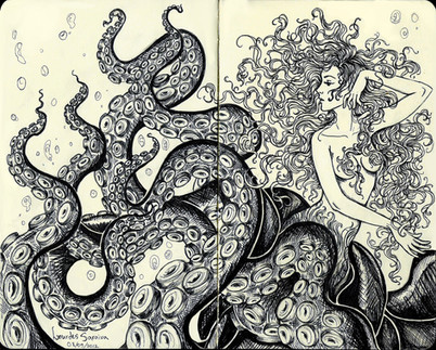 "I've watched enough hentai to know where this is going!"I've heard that too many times with this piece haha! But yes, i saw some tentacles that i fancied having a go at drawing, this was the final result