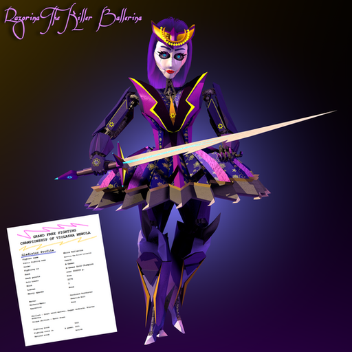 This was her most well known, maybe not always the most effective, but unique attack. Clearly, she did this to put up a show on the arena. However it also makes her razor skirt (which is like a circular saw blade) spin fast, making any close range enemies get sawed, IF their head didn't already get cut off by the great sword.Related content
