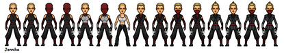 Update 1: Improved casual clothes and added a dress & training outfit.Update 2: Added a league of shadow uniform which she stole after being revived from the pit & i added a Vigilant logo to the last suit.
