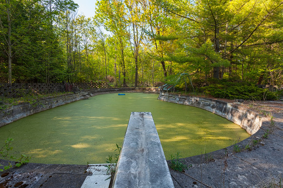 Oh, the cat house! I saw an urbex video of this place on YouTube. I recognize the round living room. A poor kitty had died and been decaying inside the outer garden area. That wallpaper going all around including the ceiling is interesting.