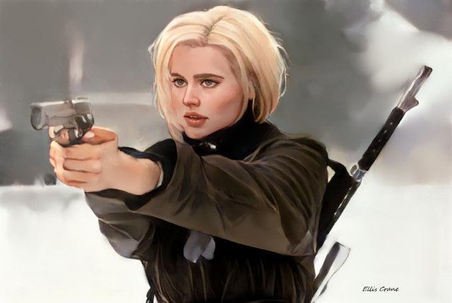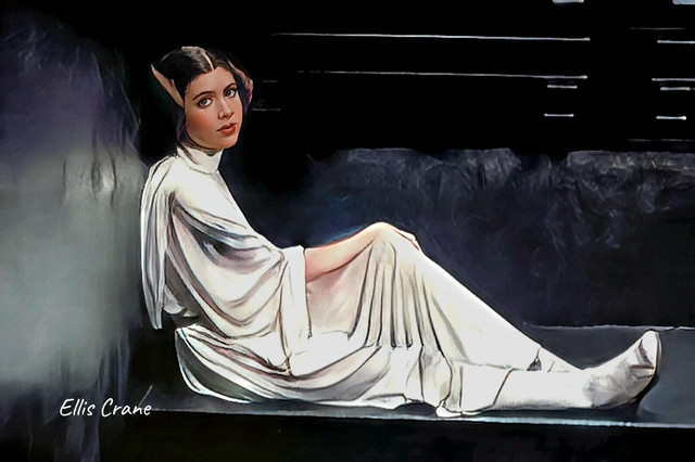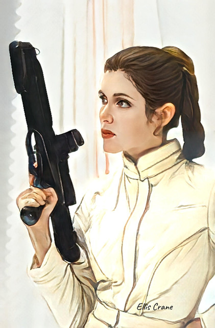 From The Last Jedi. Kylo is a blob in the background because 1) distracting; and 2) I suck at tiny painting.Facial features mapped in Photoshop with color removed (coloring book mode) and repainted in Krita.
