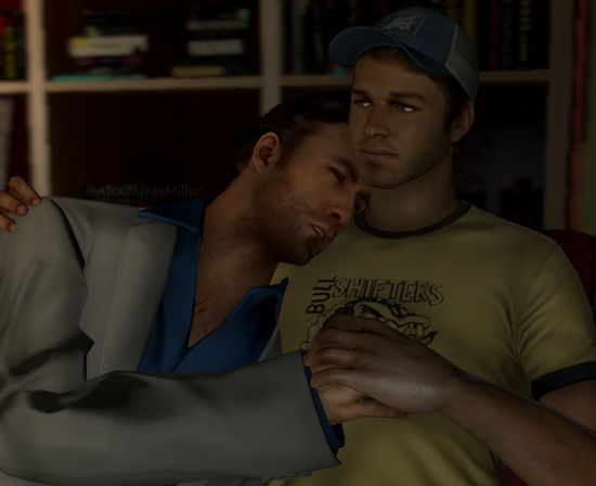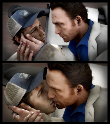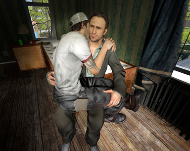 What with Ellis' innate sense of people and Nick's razor-sharp X-ray vision, they both knew. Neither would breathe a word, but they knew. It was an awkward, clingy kind of knowledge that raised more questions than it answered, and for weeks they danced around it like children in the back seat not touching each other. During that time their curiosity only grew, and morphed imperceptibly into something closer to longing. Still they did nothing more than bicker, poking and prodding with words both pointed and soft, until one night they didn't speak at all.The saferoom was tiny, barely big enough to shelter the four of them through to the dawn. They woke with the first shy blushes of sunrise, startled, having rolled close together in their sleep and only now discovering that their bodies molded perfectly against one another.