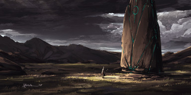 Hello everyone!Here's one of my latest paintings. I did this is as an example for my students, so I went back to basics: rocks, fog and glowing symbols!