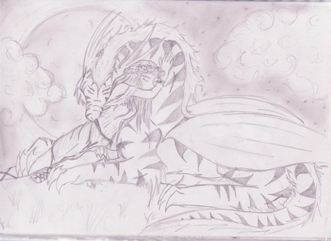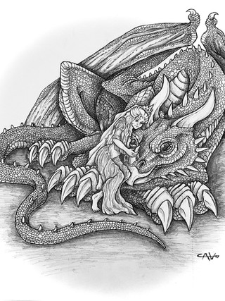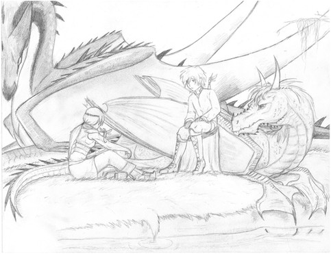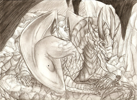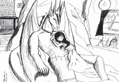 well, they're not dogs, but...So Ellofayne is sleeping on Corlath's dragon tummy. this is the first time I've ever drawn cor as a dragon... I hope he likes it. I like his face a lot, but he is very fat. oh wells.