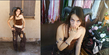 I wish her face came out better. Normal outfit, the darkness boots make her thighs look funny though haha. They're in a forest, aren't the trees cool? They're wavy, like whip cream!