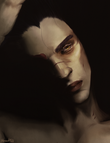 Chaotic portrait with my char. Just trying to draw difficult for me face angles. I`m not sure I`m okay with this pic but well, let it be for some varietyAlso just in case: Ganivet is not a girl ans these things on his forehead - scars