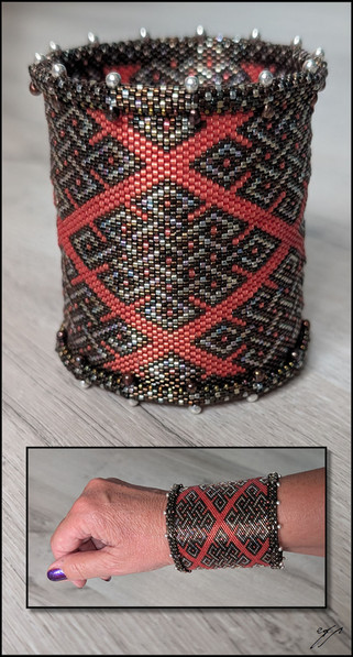 #handmade #beadwork #bracelet #cuff #jewely #peyote #red #seedbeads #delicabeads #beadwaving