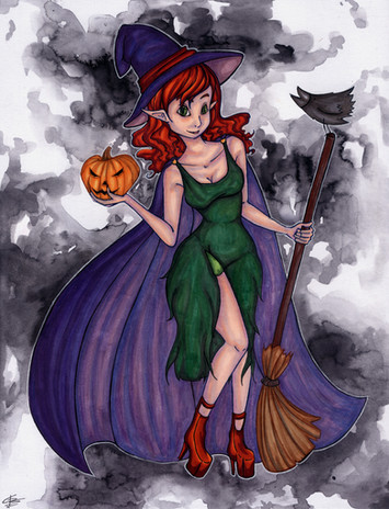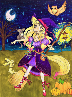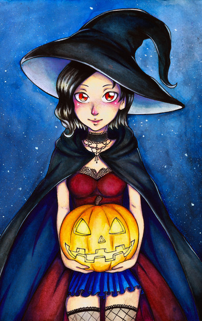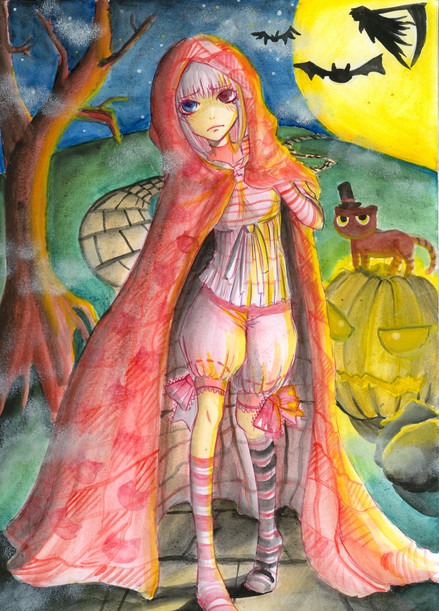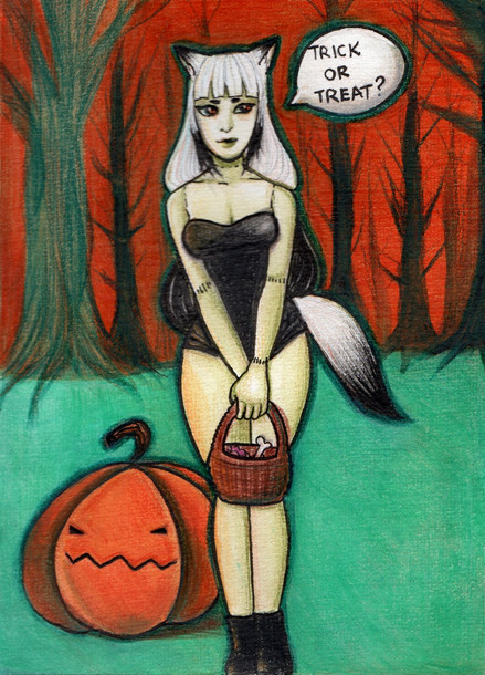 Widzę, że u Ciebie też był special na Halloween! Nice~ Fajny strój i full-body pic wyszedł bardzo dobrze! Podoba mi się to, że ten art jest w traditionalu. Tekstura kartki daje taki fajny efekt <3