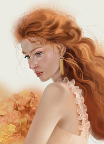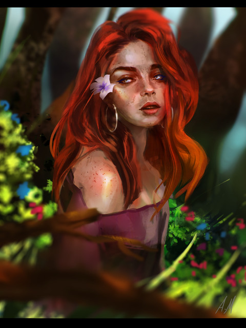 I love the flow of the hair and the how the background is in full harmony with her. It seems all just so fitting!